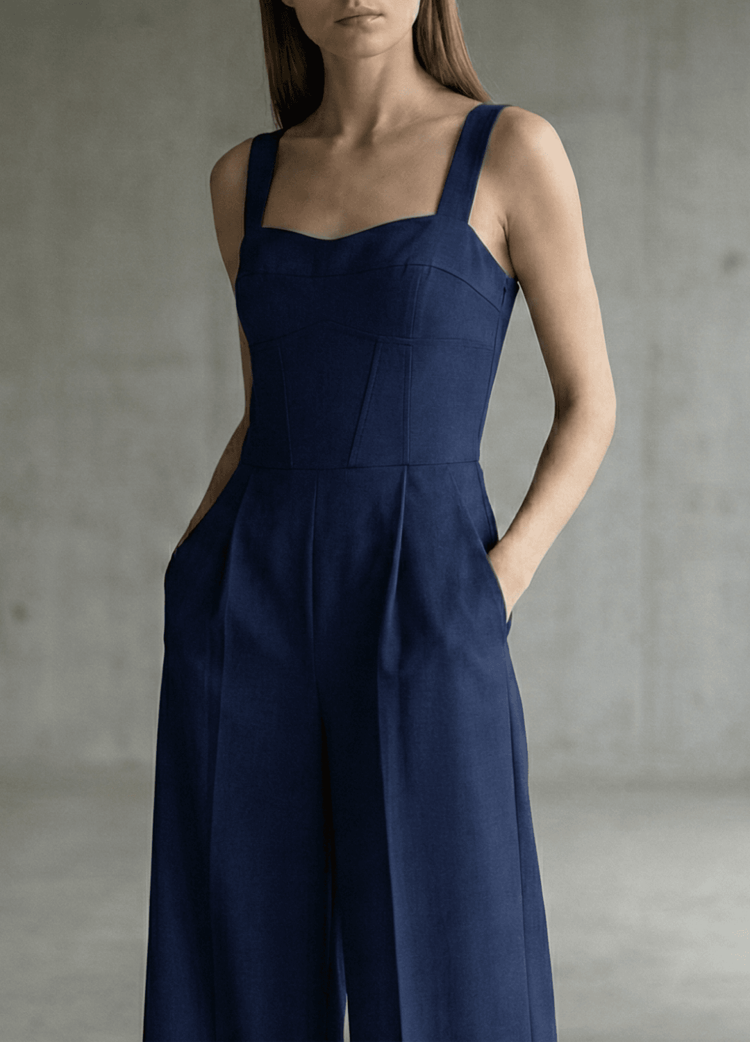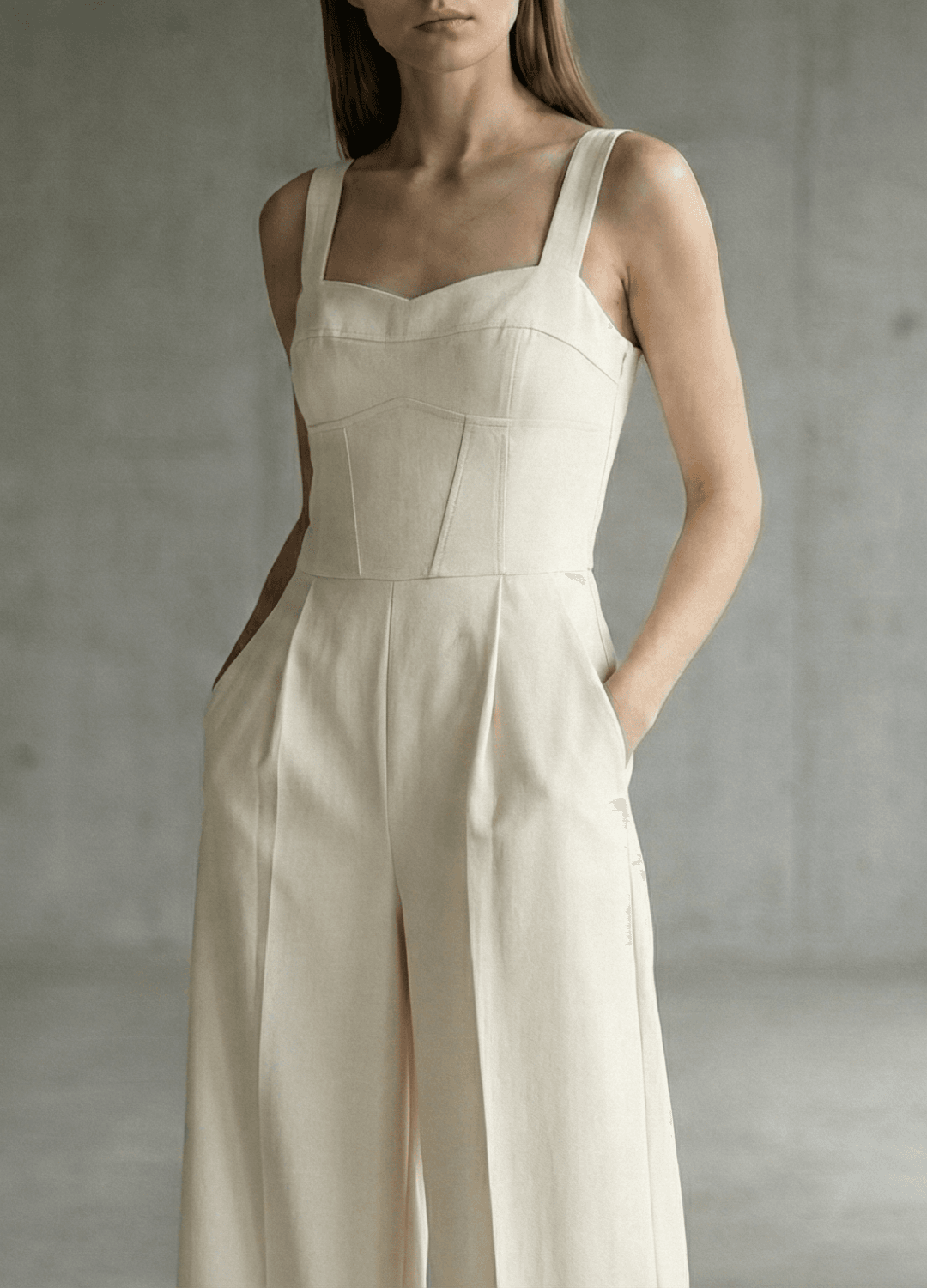 אוברול סטרפלס בגזרת מחוך עם מכנסיים רחבים.